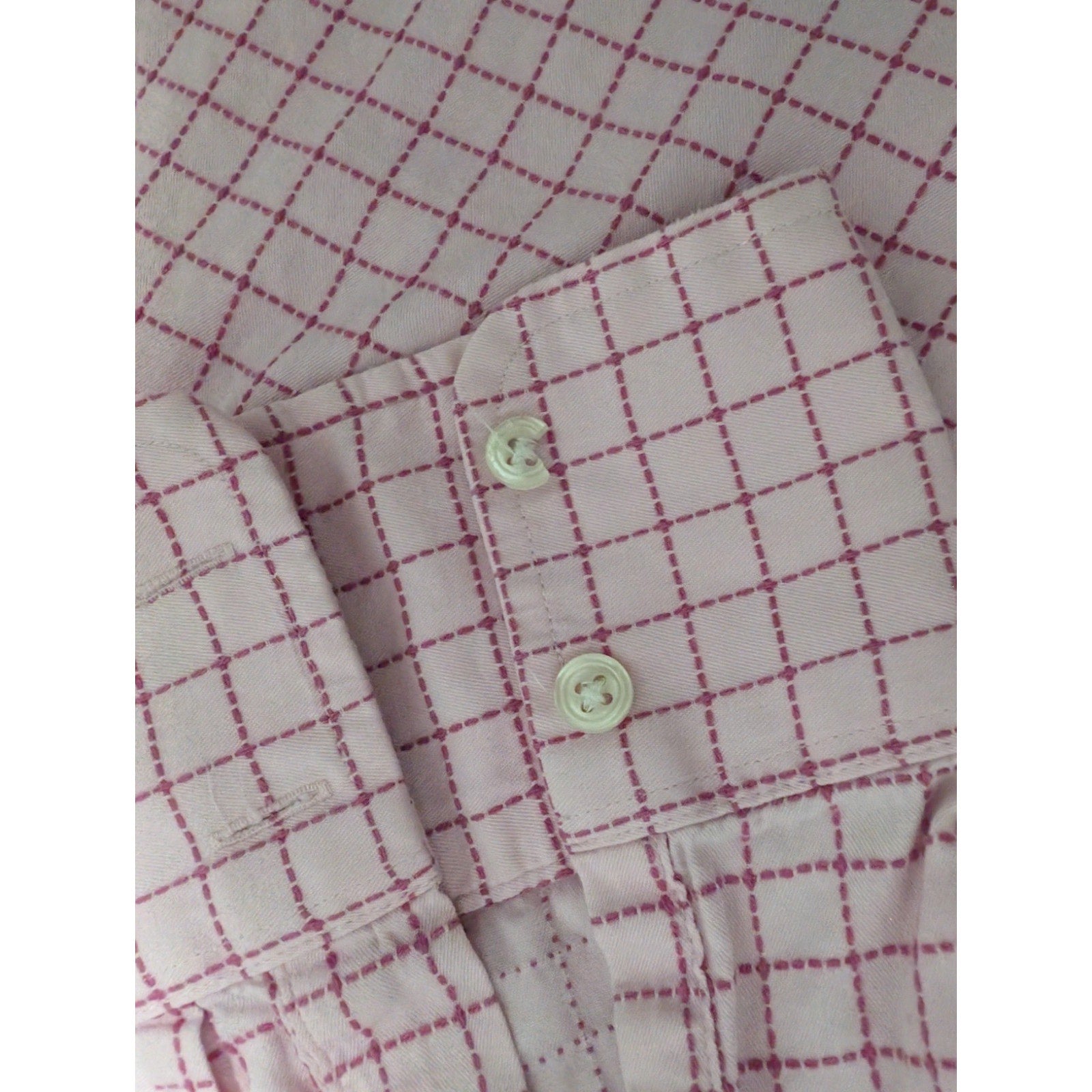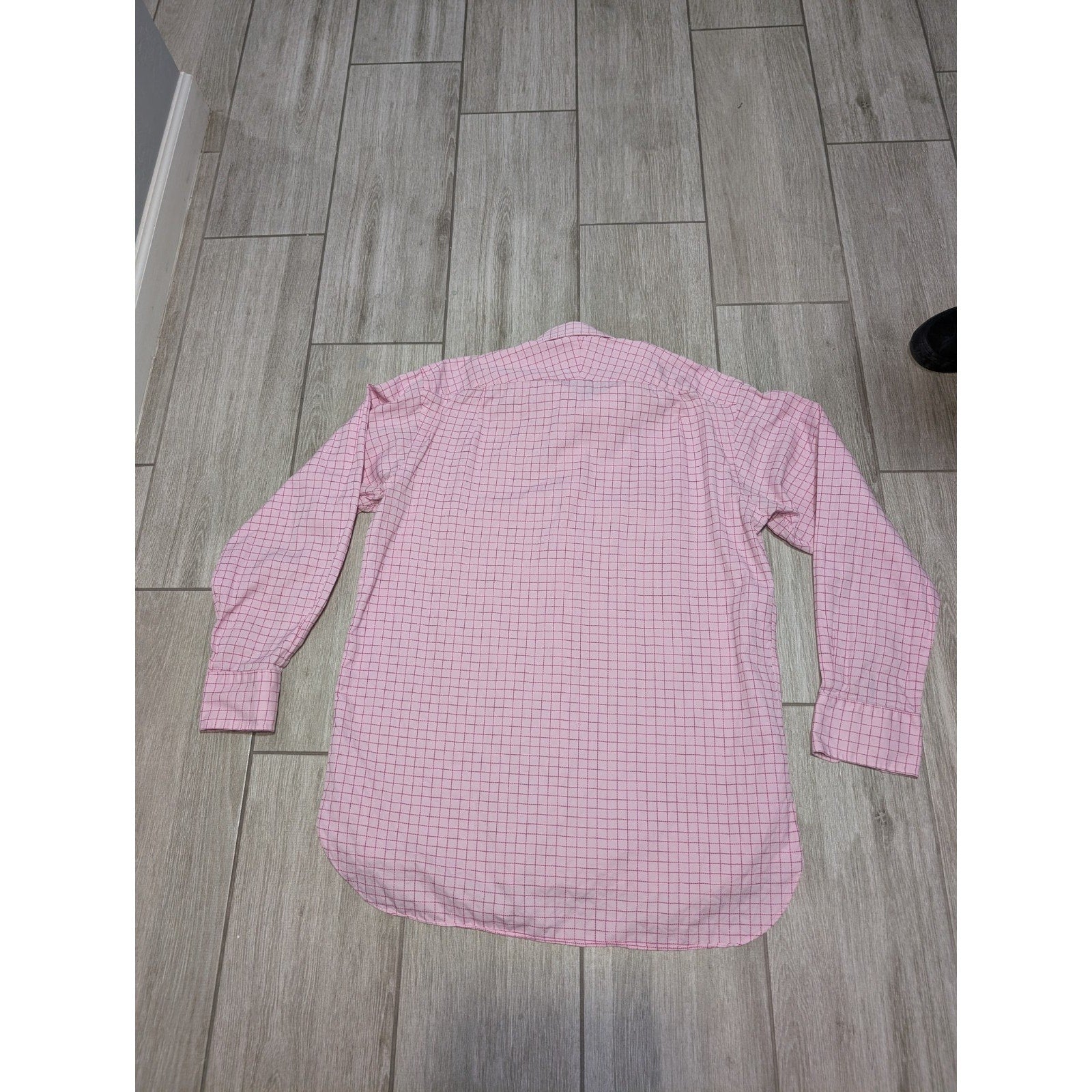 PINK - Thomas Pink Jermyn Street London Men's Button Up Casual Dress Shirt in size 16 features a classic plaids and checks pattern in a stylish pink color. Made from 100% cotton, this shirt has a regular fit with a spread collar and French cuff detail. Perfect for casual occasions, it offers a comfortable and sophisticated look with a touch of London charm.